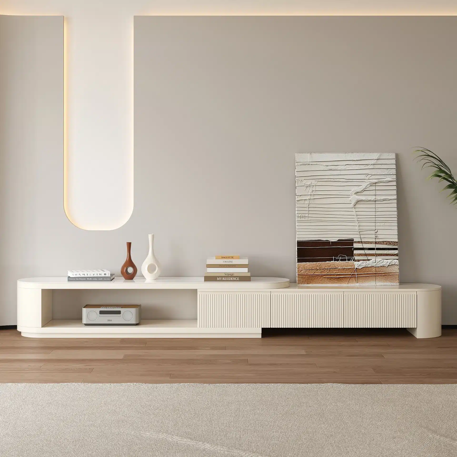 - وحدة تلفزيون قابلة للتمديد من 180 إلى 290 سم لتناسب مختلف المساحات.