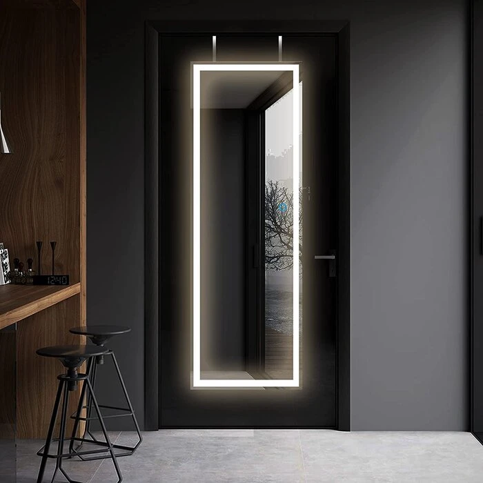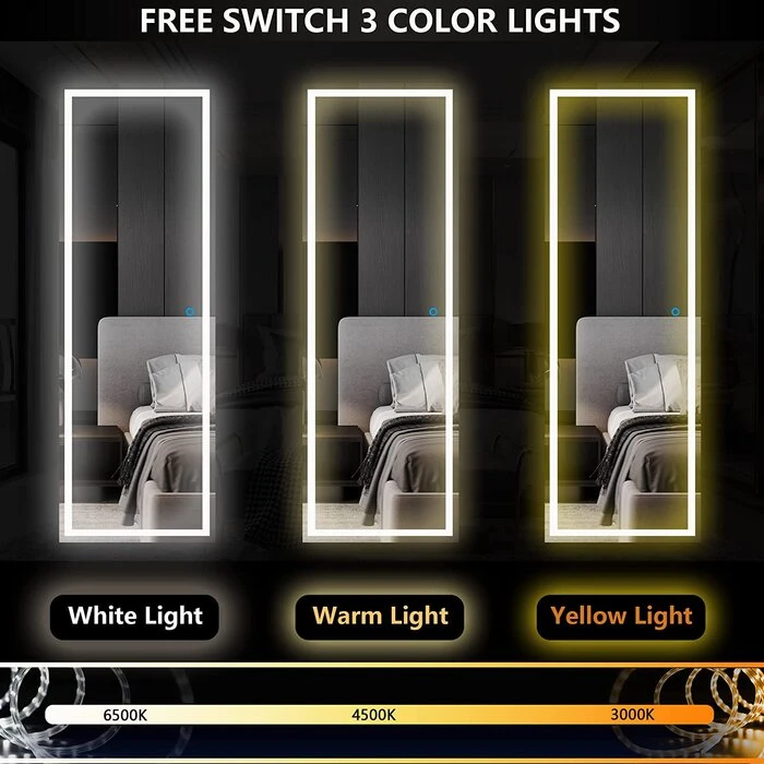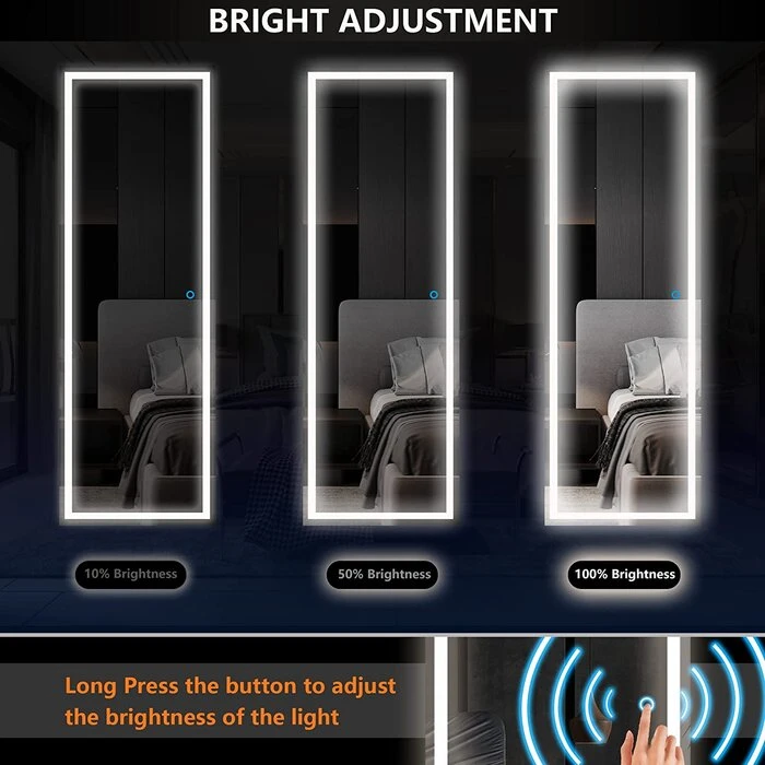 - إضاءة LED مع ثلاث مستويات: يتميز إطار المرآة بـ وحدات LED تضئ بثلاثة مستويات (أبيض، دافئ، أصفر)، مما يضيف لمسة كلاسيكية وأنيقة للمكان.