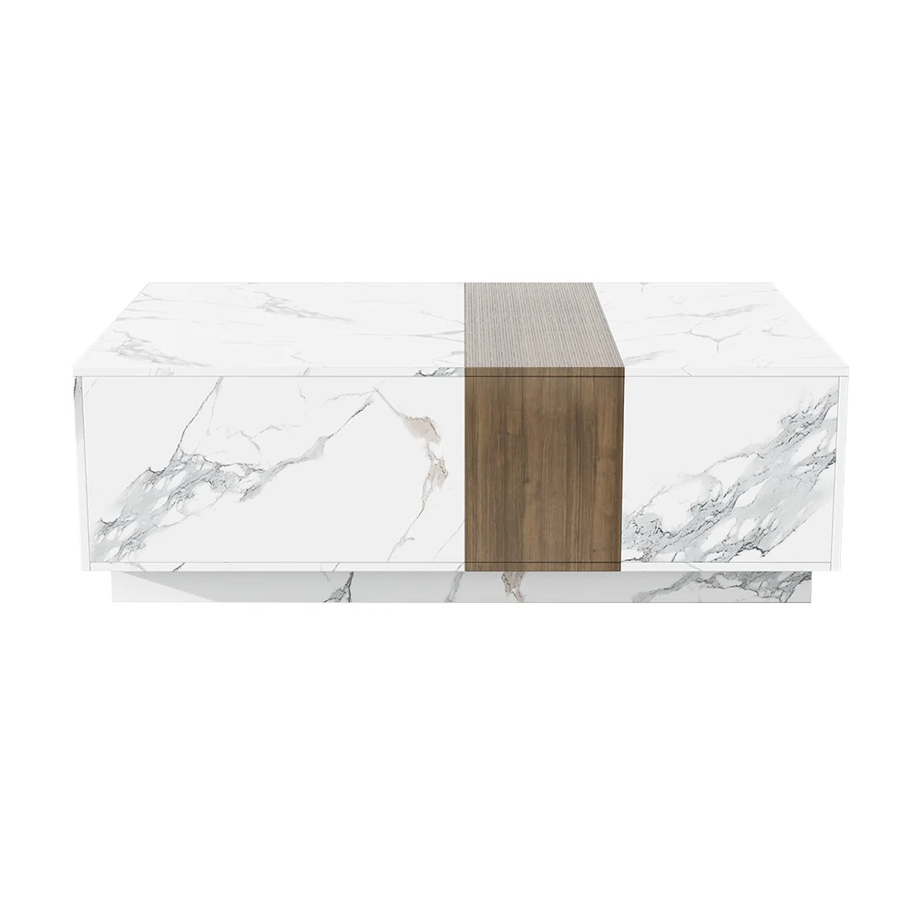 - طاولة قهوة متطابقة بتصميم عملي واسع مع أدراج مخفية للتخزين.