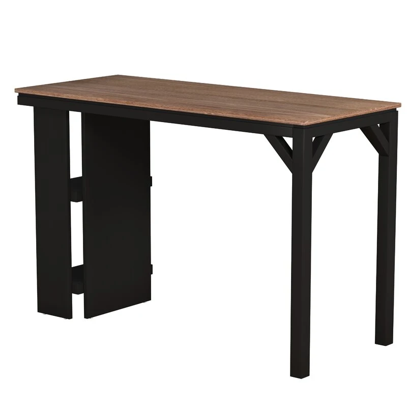 - الطاولة مصنعة من الخشب و لها شكل المستطيل مكونة من خمس قطع مع قاعدة سوداء مصقولة وسطح بلوطي مصقول بأسلاك.
