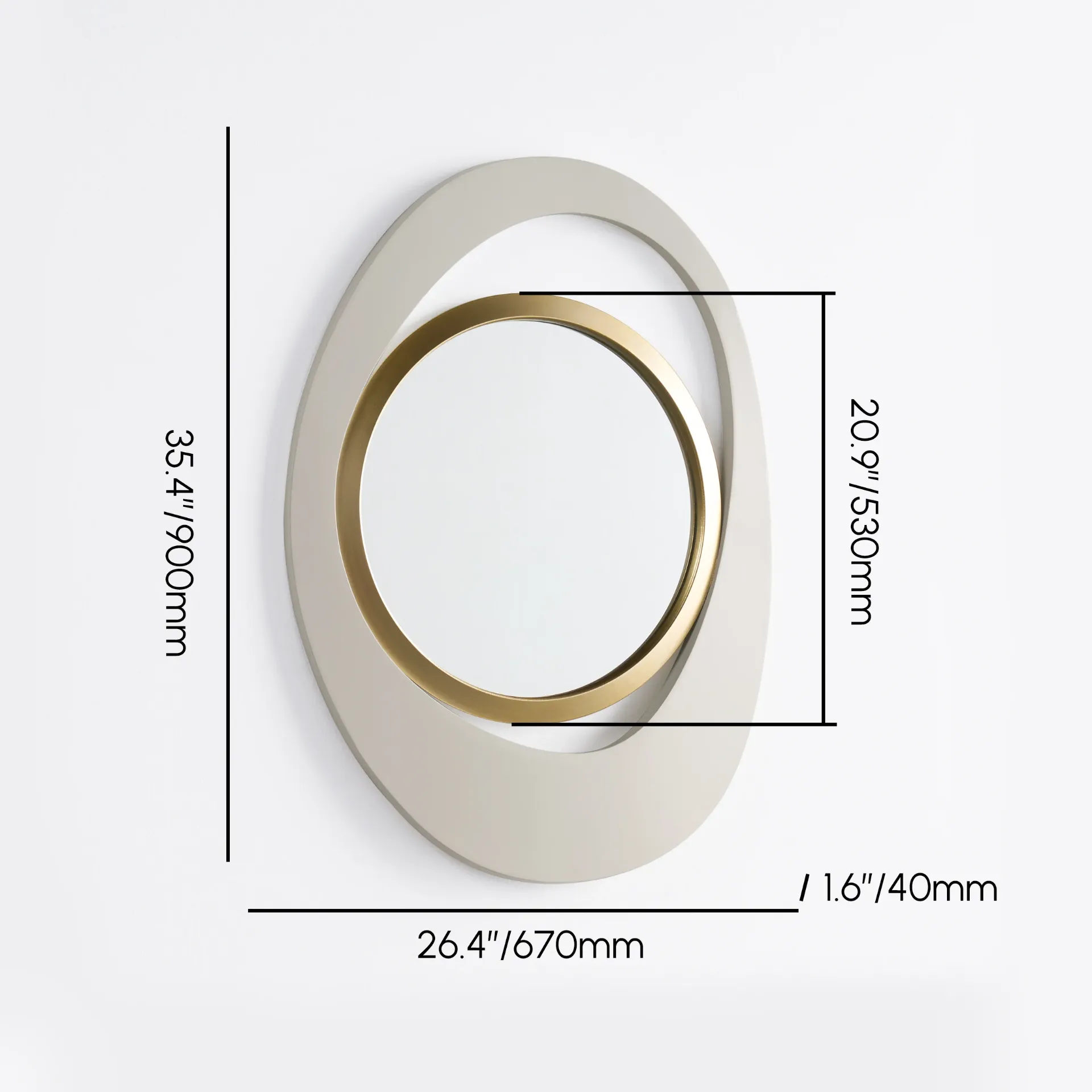 أضف لمسة من الأناقة العصرية إلى منزلك مع مرآة الحائط أوربت لوكس. تتميز هذه المرآة بإطار غير متماثل يحيط بمرآة دائرية مذهلة مع حافة ذهبية تبرز في مركزها، مما يمنحها تصميمًا يجمع بين الحداثة والطابع الفني الفريد. المقاس الارتفاع: 90 سم * العرض: 67 سم * العمق 4سم