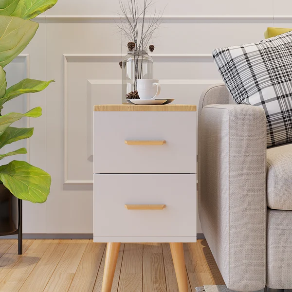 مميزات مونيمو طاولة جانبية 2 درج خشب طبيعي