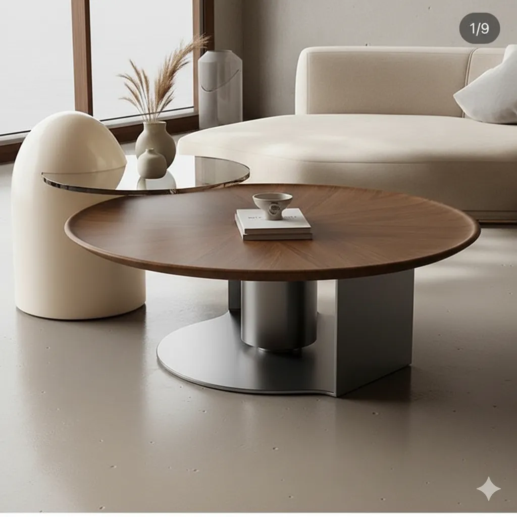ميرانو طقم طاولات قهوة مودرن يمثل مزيجًا مثاليًا بين البساطة العصرية والدفء الطبيعي، حيث يتميز بسطح خشبي دائري بتشطيب أنيق يعكس الفخامة، مع قاعدة معدنية ثابتة تضيف لمسة حديثة متوازنة.