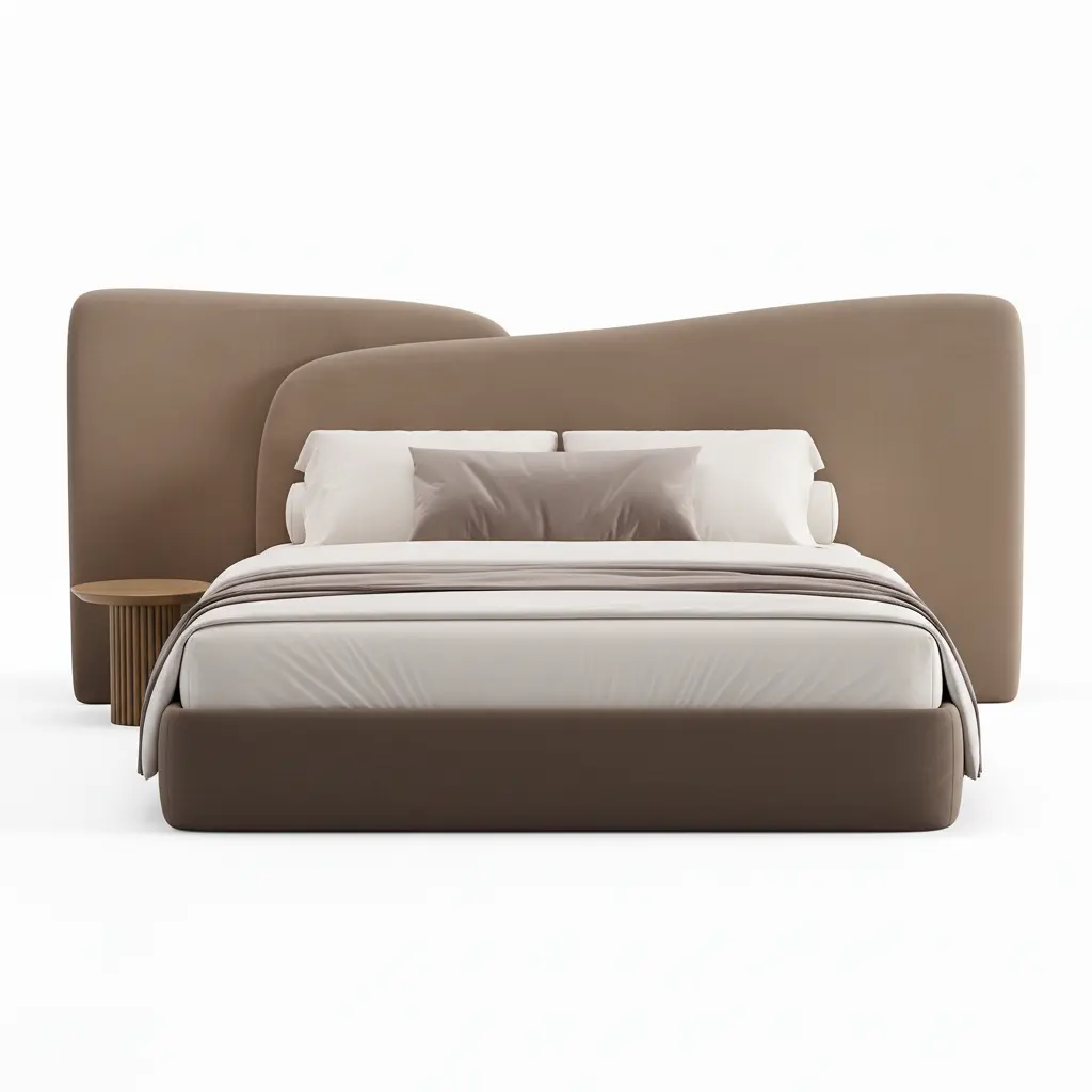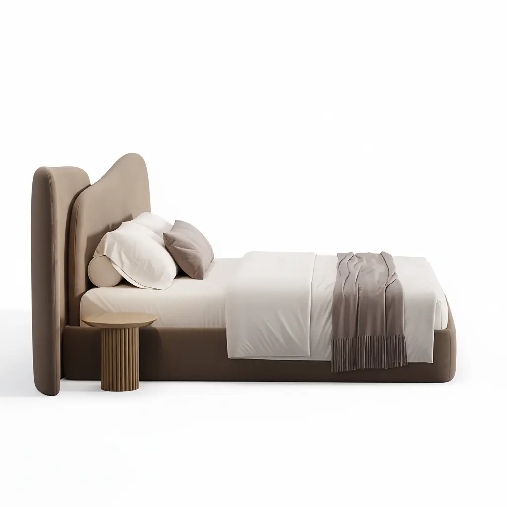 يتميز بخلفية منحنية انسيابية تمنح الغرفة حضورًا راقيًا وإحساسًا بالهدوء والرفاهية.