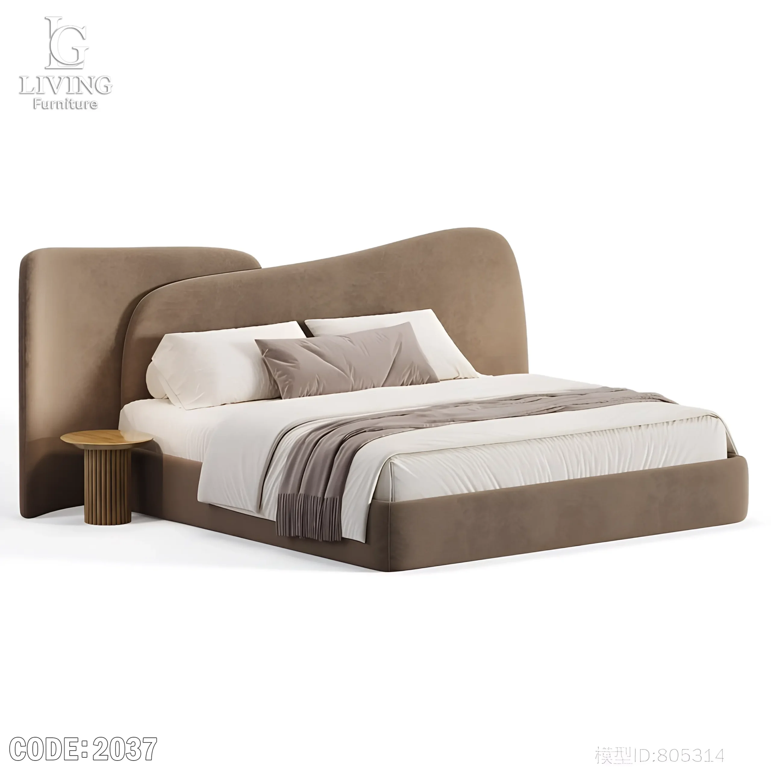 تم تنجيده بقماش مخملي فاخر بلون بيج فاتح يضفي لمسة دفء فخمة ويمنح السرير مظهرًا عصريًا يناسب أرقى غرف النوم.