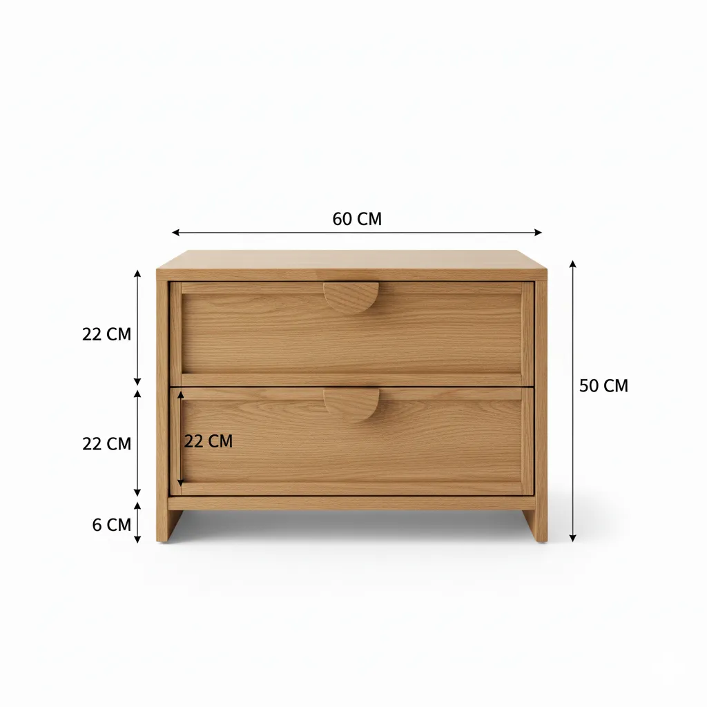 يحتوي الكومود على درجين بعمق مناسب يوفران مساحة عملية لتخزين الأغراض اليومية مثل الكتب، الإكسسوارات، أدوات النوم أو المستلزمات الشخصية، مع سطح علوي مثالي لوضع أباجورة أو ديكور بسيط.