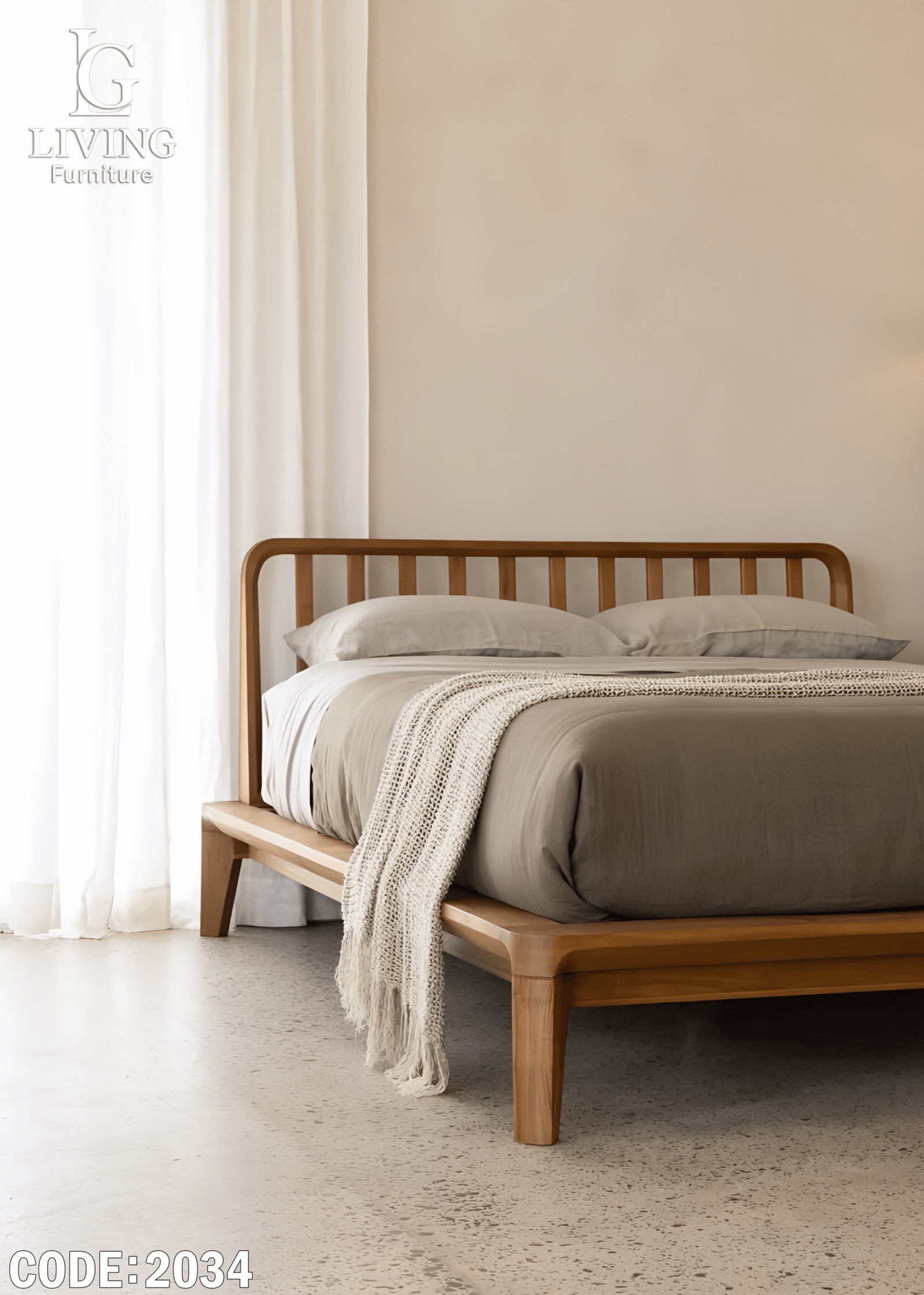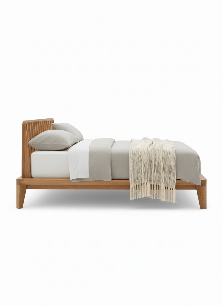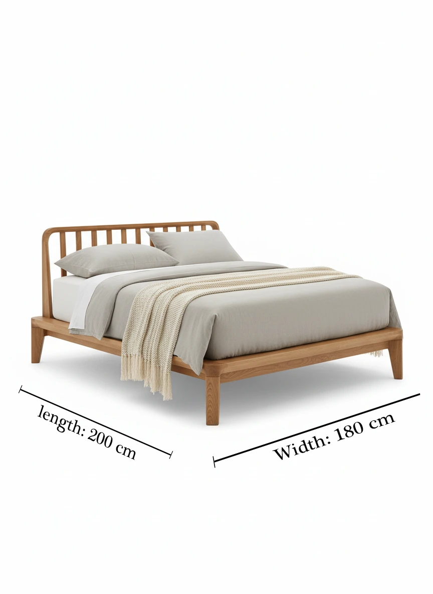 يتميز بإطار قوي وقاعدة ثابتة توفر دعمًا مثاليًا للنوم، بينما يضفي الرأس الخشبي المنحني بخطوطه الرفيعة لمسة من النعومة والتوازن البصري.