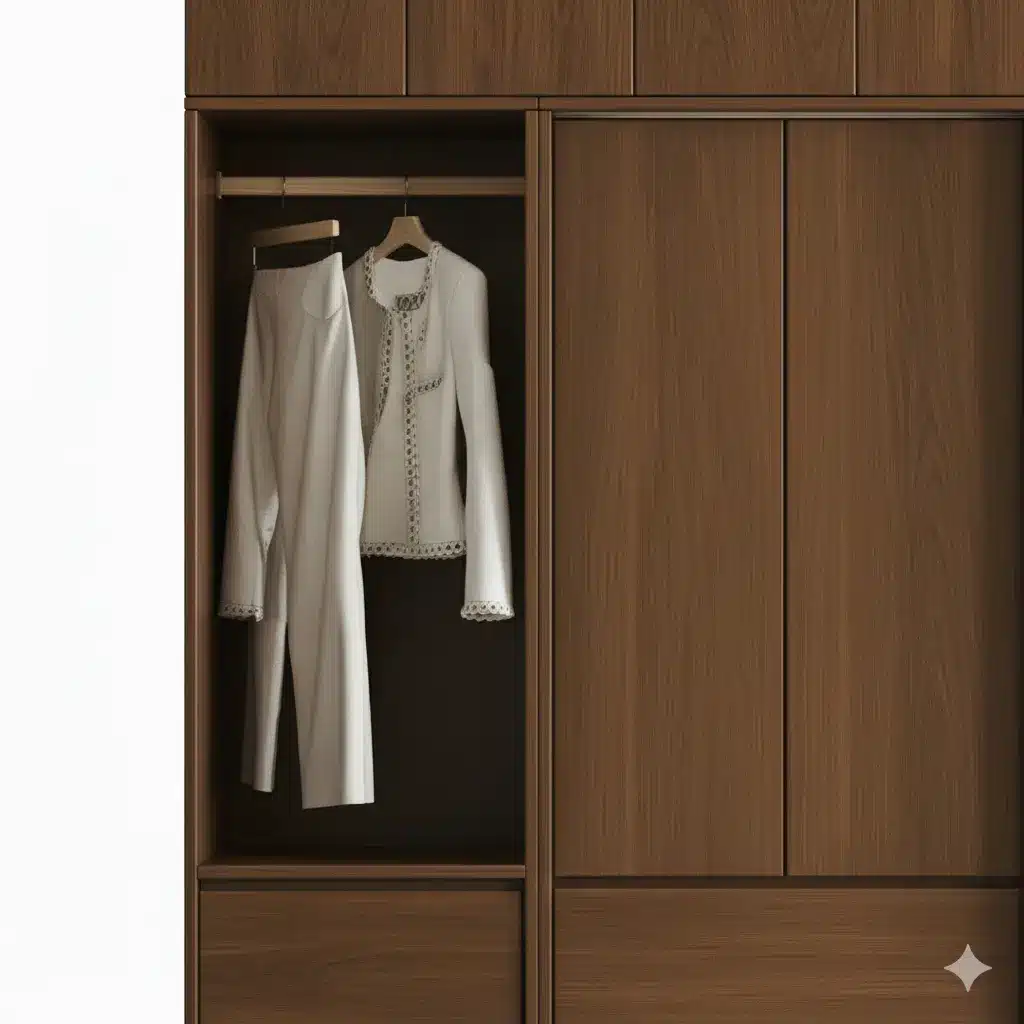 تتميز بتجهيز داخلي يجمع بين أرفف واسعة، مساحة تعليق، وأدراج سفلية توفر حلول تخزين منظمة لجميع احتياجاتك اليومية.