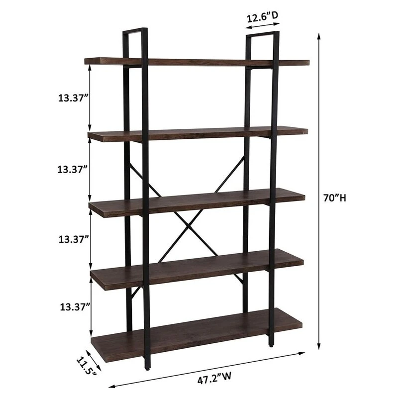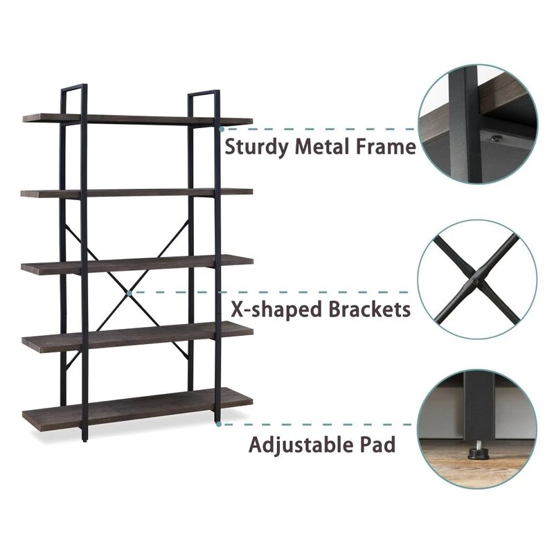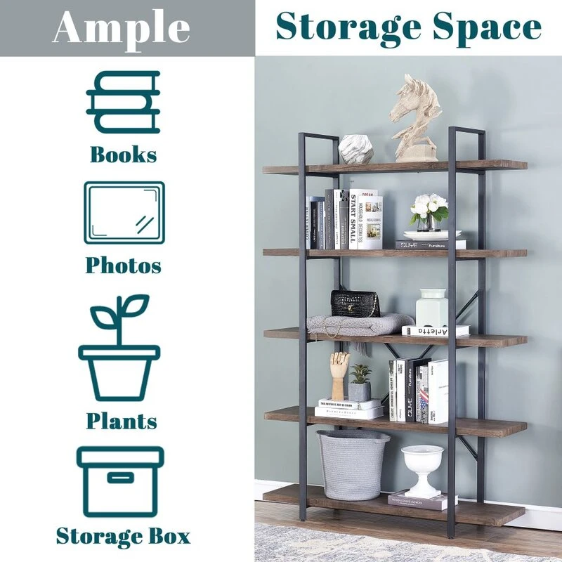 - سعة تخزين كبيرة: تحتوي الوحدة على خمسة رفوف خشبية مما يمنحك مساحة كافية لتنظيم الكتب، الصور، التحف، وأواني النباتات.