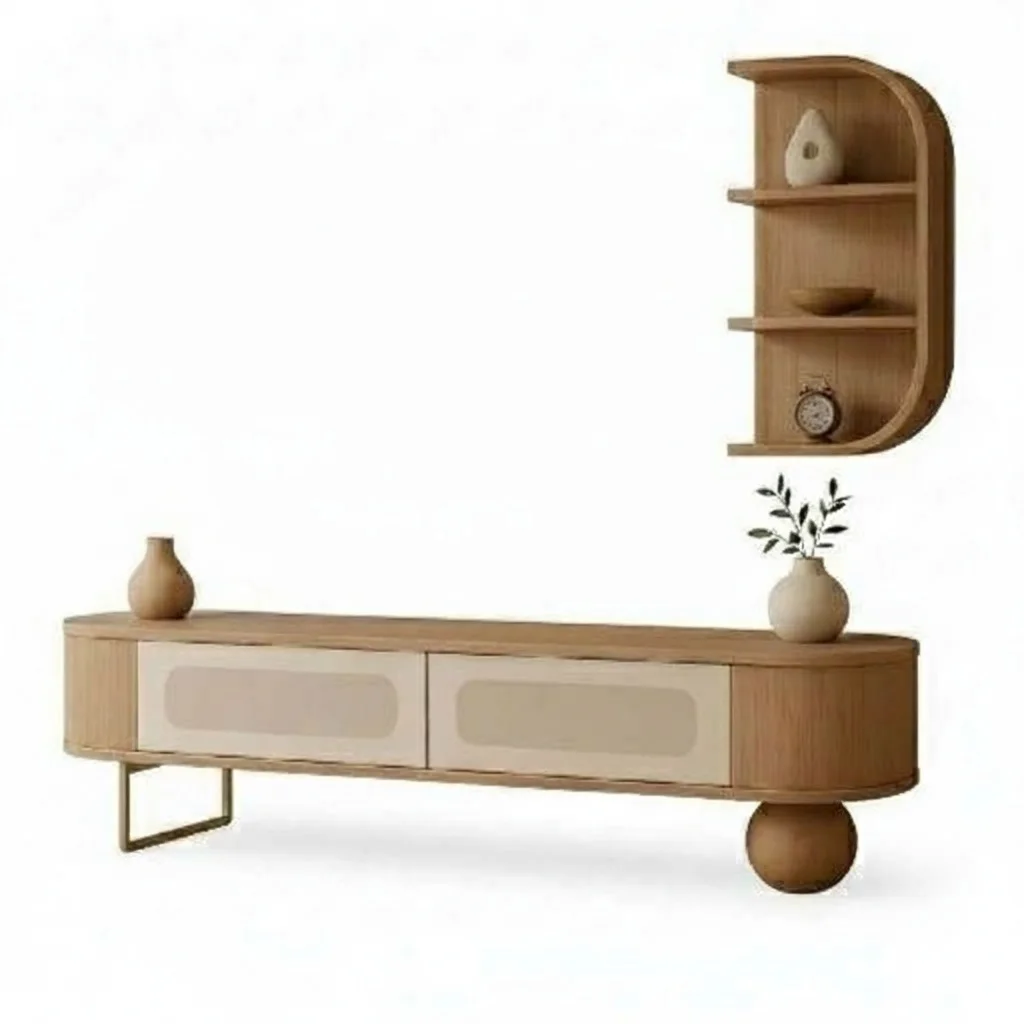 وحدة تلفزيون أوريون إيليت تجمع بين الأناقة العصرية والتفاصيل العملية لتمنح منزلك لمسة مميزة. تأتي بتصميم هندسي انسيابي يجمع بين الخشب الطبيعي الفاتح واللون البيج الناعم ليخلق مظهراً متناغماً ودافئاً. توفر سطحاً عملياً لعرض شاشة التلفزيون، بالإضافة إلى وحدات تخزين مغلقة تساعد على تنظيم الأجهزة والإكسسوارات بشكل أنيق. بفضل أرجلها المميزة بخطوط مبتكرة ولمسة ديكورية عصرية، تعتبر هذه الوحدة خياراً مثالياً لمحبي البساطة الراقية والحداثة.