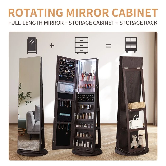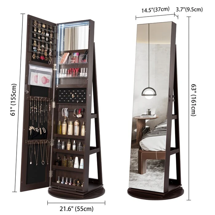 - مرآة طويلة: استخدمي خزانة اكسسوارات مع مرايا لرؤية كاملة لمظهرك أثناء اختيار المجوهرات أو الإكسسوارات.
