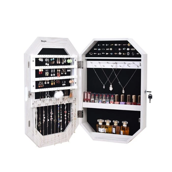 - أمان إضافي: الخزانة مزودة بمفتاح جانبي لضمان الأمان وحماية المجوهرات.