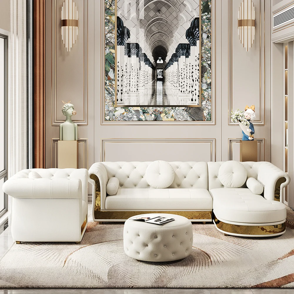 حوّل مساحة المعيشة لديك مع طقم الأريكة المبطّنة ڤالينسيا، المصمم ليجمع بين الفخامة الكلاسيكية والأناقة العصرية في تصميم واحد متكامل. يتكوّن الطقم من أريكة مقسمة واسعة مع كرسي جانبي ووحدة استرخاء متطابقة، ليمنحك مرونة مثالية في توزيع الجلوس حسب احتياجاتك اليومية أو عند استقبال الضيوف.