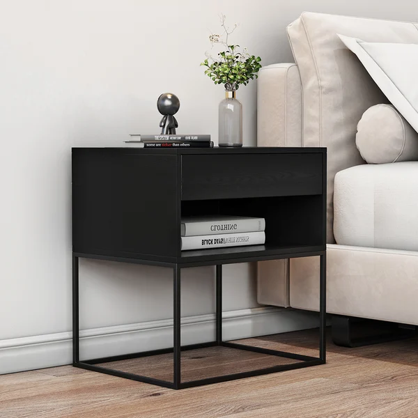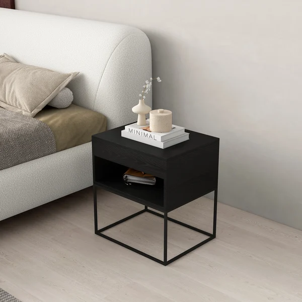 أضف لمسة جمالية إلى غرفة نومك مع طاولة غرفة نوم ڤالڤا. تتميز هذه الطاولة الجانبية بتصميم عصري وأنيق يعكس أسلوبًا معاصرًا مع استخدام مواد عالية الجودة، حيث تجمع بين المعدن والخشب الطبيعي لتوفير قوة وصلابة وديمومة طويلة. كما أن سطحها الناعم والدرج مع الرف المفتوح يوفر مساحة تخزين مثالية لتلبية احتياجاتك اليومية. المقاس 50 سم عرض × 40 سم عمق × 55 سم ارتفاع