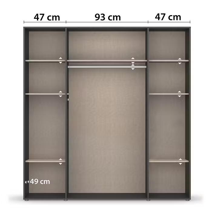 • تقسيم داخلي عملي لتخزين الملابس، الإكسسوارات، والمتعلقات الشخصية بطريقة منظمة.