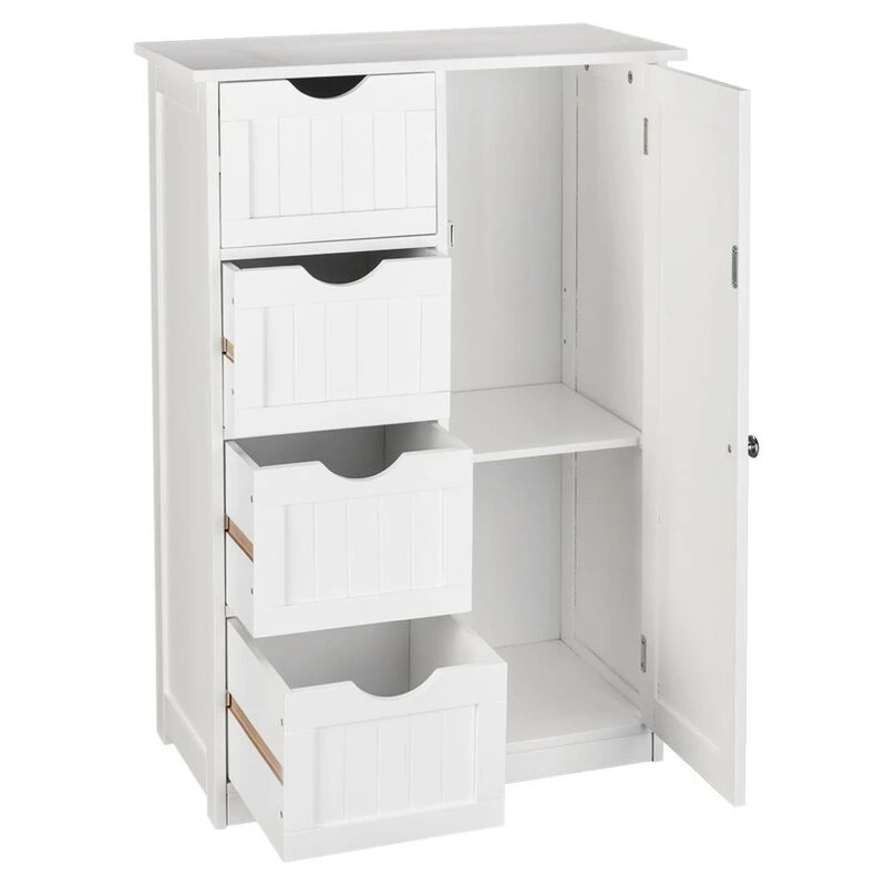 هل تبحث عن خزانة لتخزين مقتنياتك في الحمام أو في أي غرفة أخرى؟ نقدم لك خزانة تخزين الحمام ذات الباب الواحد والأربعة أدراج، التي توفر لك حلًا مثاليًا لتنظيم المساحات.